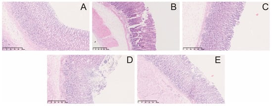 The fixed tissues were removed from the neutral formalin solution, washed with tap water, dehydrated with different ethanol concentrations, and embedded in paraffin. Subsequently, the gastric tissue was sectioned and then stained with hematoxylin-eosin (HE). Gastric tissues were subjected to histopathological determination by NanoZoomer-SQ pathological slide scanner (Tokyo, Japan).