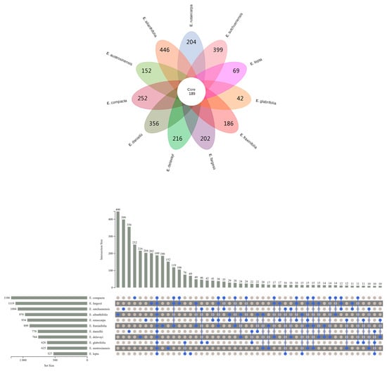 Venn diagram for putatively annotated metabolites in 11 Euodia species.