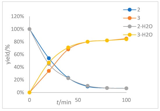 To further investigate the role of water in this reaction, we first added additional water (1.0 eq) to the reaction system, employing 1 as the substrate under standard conditions, and monitored the reaction course along with those systems without additional water for comparison; the experimental results are shown in Figure 1 (for detailed information, see Table S1 on page S17 and Table S2 on page S18 in the Supporting Information ). In Figure 1, we can find that, first, in the process of the formation of product 3, the yield of product 2 increased first and then decreased gradually, indicating that product 3 may be converted from product 2, which is also in line with the result shown in Scheme 4d; however, we cannot completely exclude the possibility of direct conversion from substrate 1 to 3. Second, whether or not additional water is added has almost no effect on the rate of formation of product 3. This indicates that trace amounts of water are already sufficient to promote the formation of product 3, and more water in the reaction system cannot further accelerate the reaction. In terms of the difference in the rate of product 2 formation during the reaction, we attribute this to experimental errors.
