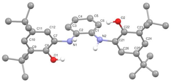 Since the original publication by Wieghardt et al. on Cu and Zn complexes [], a number of coordination compounds of H4N2O2 with other metals have been reported, namely Ti [,,], Zr [,,], Hf [,], V [], Mo [], W [], Mn [], Fe [,], Co [], Ni [], Sn [] and U []. In addition, several compounds of P [,] and Te [] are also known. Until now, reports on metal complexes with H4N2O2 have been focused on the structural and spectral characterization of the isolated products, but studies on chemical reactivity, including catalytic applications, are still rare. The most notable catalytic uses to date are the use of copper complexes for the aerobic oxidations of alcohols to aldehydes [,] and aliphatic hydrocarbons to alcohols [], zirconium-catalyzed disproportionation of 1,2-diphenylhydrazine [] and the polymerization of rac-lactide using titanium and zirconium complexes []. As H4N2O2 can form stable radicals upon coordination to the metal centers, such complexes might be useful in materials research. In general, stable neural radicals can offer building blocks to construct materials for magnetic, spintronic, electronic and optoelectronic applications [].