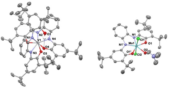 - Hänninen, M.M.; Paturi, P.; Tuononen, H.M.; Sillanpää, R.; Lehtonen, A. Heptacoordinated Molybdenum(VI) Complexes of Phenylenediamine Bis(Phenolate): A Stable Molybdenum Amidophenoxide Radical. Inorg. Chem. 2013, 52, 5714–5721. [Google Scholar] [CrossRef]
