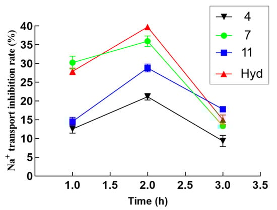 | Compound | Transport Inhibition Rate (%) a | Compound | Transport Inhibition Rate (%) a | ||
