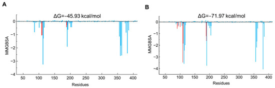 where ΔEvdW represents the energy contribution of van der Waals interactions, and ΔEele is the energy contribution of electrostatic interactions in the gas phase. ΔGpol and ΔGnonpol are the energy contribution of the polar and nonpolar solvation, respectively [35].