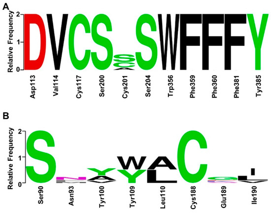 (A) α-AR receptor family sequence conservation in orthosteric sites; (B) sequence conservation of exosites.