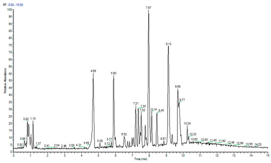 UPLC-ESD-HRMS chromatogram of SidTea+TM extract analysis.