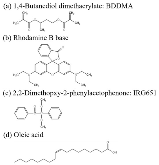 Gd2O3 nanoparticles (diameter 40–60 nm), the inorganic nanoparticles used in this experiment, were acquired from Alab (Shanghai, China) Chemical Technology Co. (Shanghai, China). Oleic acid, a modifier for the nanoparticles, was bought from Sinopharm Chemical Reagent Co. (Shanghai, China). The specific chemical structures of materials used in this study are presented in Figure 1. The Gd2O3 nanoparticles were surface-modified using oleic acid to inhibit their agglomeration and uniformly disperse them in the LC/monomer mixtures.