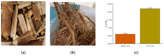 (a) Rough rhizomes; (b) fine rhizomes; (c) nicotine yield (%) of both rhizomes.