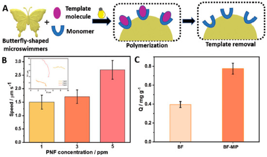 - Yuan, X.; Ferrer-Campos, R.; Garcés-Pineda, F.A.; Villa, K. Molecular Imprinted BiVO4 Microswimmers for Selective Target Recognition and Removal. Small 2023, 12, e2207303. [Google Scholar] [CrossRef]