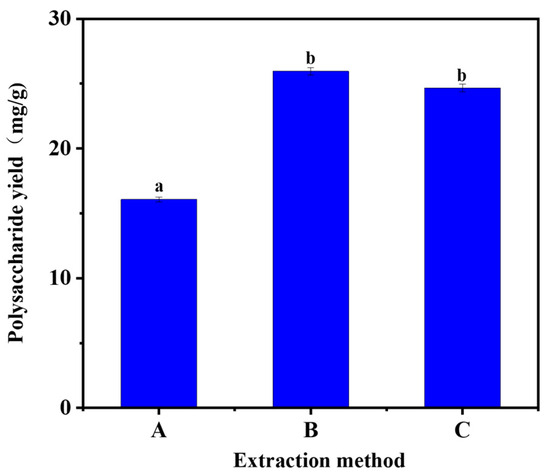 Extraction of polysaccharide content with different extractants. Note: Different letters above the columns represent significant differences (p < 0.05).
