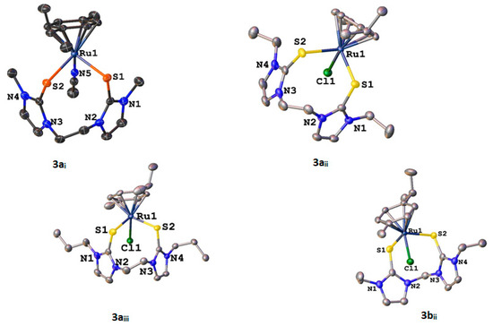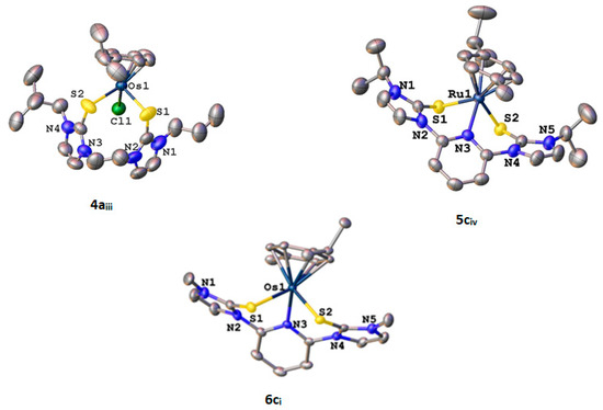 | Bond/Angle | 3ai (Ru) | 3aii (Ru) | 3aiii (Ru) | 3bii (Ru) | 4aiii (Os) | 5civ (Ru) | 6ci (Os) |