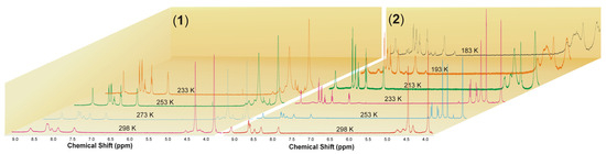 Variable temperature 1H NMR spectra of 1 and 2 in acetone-d6.