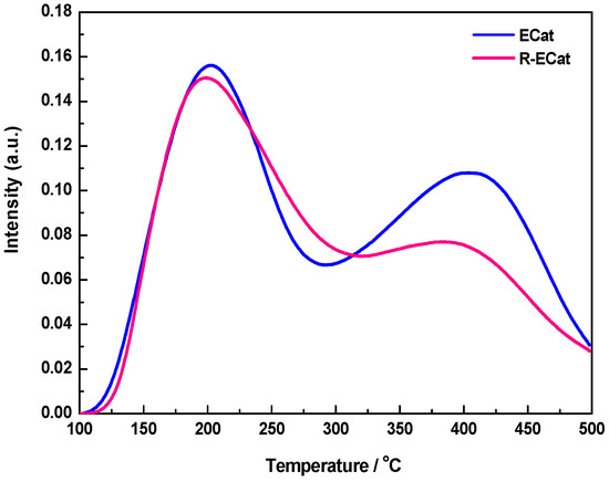 NH3-TPD profiles of ECat and R-ECat.