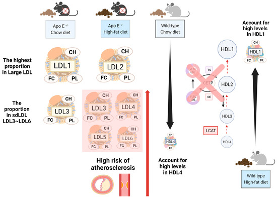 2.1. Global Analysis Demonstrated That High-Fat Diet Affected Different Lipoprotein Subfraction Changes in ApoE-/- and Wild-Type Mice