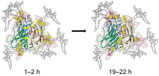 Alternatively, rather than being attached to the surface of solid supports, enzymes may instead be embedded in situ within nanoporous structures formed during a polymerization process [76] or during the spontaneous self-assembly of amphiphilic copolymers [77]. In the last case, an activity enhancement of up to 1248% (!) was observed. It was assumed that the entrapment was facilitated by hydrophobic–hydrophobic interaction between the enzyme and the complimentary blocks of the copolymers, as was postulated in the previous section, and as shown in Figure 4. One of the distinct advantages of this strategy is that the entrapped enzyme remains relatively mobile, facilitating, in this way, unhindered access to the active site.