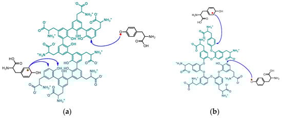Tyrosine moieties in the enzyme backbones may additionally be used in the covalent immobilization of enzymes. Attachment via tyrosine residues is most advantageous due to the relatively limited occurrence of tyrosine repeat units on the enzyme exterior, which facilitates attachment at specific sites [60]. Of additional benefit is the widespread use of enzymes to facilitate tyrosine-based enzyme coupling, specifically by the oxidoreductases horseradish peroxidase, HRP [61], laccase [62] and tyrosinase [63]. Both HRP and laccase are most often utilized for the formation of enzyme aggregates [62] due to their ability to rapidly oxidize phenols, generating phenoxy radicals which undergo radical coupling to form biphenyl or phenyl ether linkages. In contrast to the aforementioned phenolic coupling, tyrosinase can be employed to oxidize tyrosine residues to their catechol derivative, and subsequently to the reactive o-quinone. The generation of the o-quinone facilitates simple coupling to thiols and amines in either enzymes or solid supports.