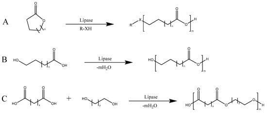 - Kobayashi, S. Lipase-catalyzed polyester synthesis—A green polymer chemistry. Proc. Jpn. Acad. Ser. B 2010, 86, 338–365. [Google Scholar] [CrossRef]