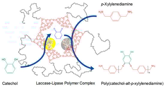 - Scheibel, D.M.; Gitsov, I. Unprecedented Enzymatic Synthesis of Perfectly Structured Alternating Copolymers via “Green” Reaction Cocatalyzed by Laccase and Lipase Compartmentalized within Supramolecular Complexes. Biomacromolecules 2019, 20, 927–936. [Google Scholar] [CrossRef]
