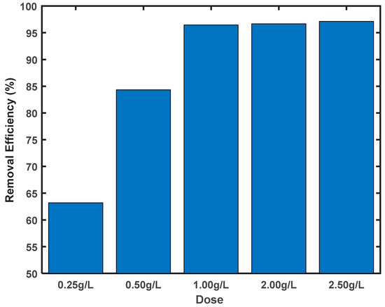 The removal efficiency was calculated from the residual concentration, and the results are presented in Figure 5.