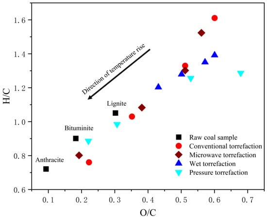 H/C-O/C two-phase diagram of torrefaction samples [].