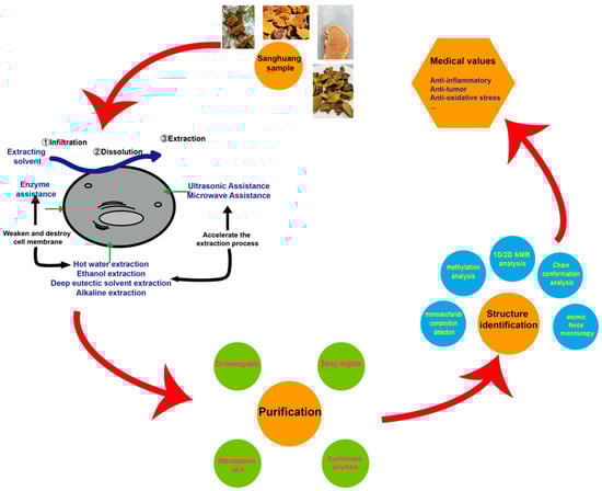 - Wang, H.; Ma, J.X.; Zhou, M.; Si, J.; Cui, B.K. Current advances and potential trends of the polysaccharides derived from medicinal mushrooms sanghuang. Front. Microbiol. 2022, 13, 965934. [Google Scholar] [CrossRef]