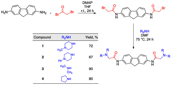 3.2.4. N,N′-(9H-Fluorene-2,7-diyl)bis(2-(pyrrolidin-1-yl)acetamide) (4)
