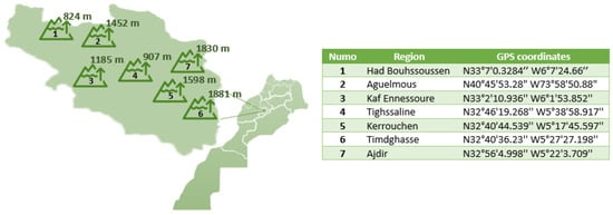 - Serbouti, S.; Ettaqy, A.; Boukcim, H.; Mderssa, M.E.; El Ghachtouli, N.; Abbas, Y. Forests and woodlands in Morocco: Review of historical evolution, services, priorities for conservation measures and future research. Int. For. Rev. 2023, 25, 121–145. [Google Scholar] [CrossRef]