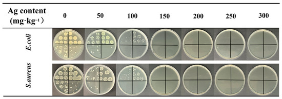 | Ag Content (mg·kg−1) | Antibacterial Rates (%) | |