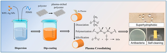 - Ye, Z.; Li, S.; Zhao, S.; Deng, L.; Zhang, J.; Dong, A. Textile coatings configured by double-nanoparticles to optimally couple superhydrophobic and antibacterial properties. Chem. Eng. J. 2020, 420, 127680. [Google Scholar] [CrossRef]