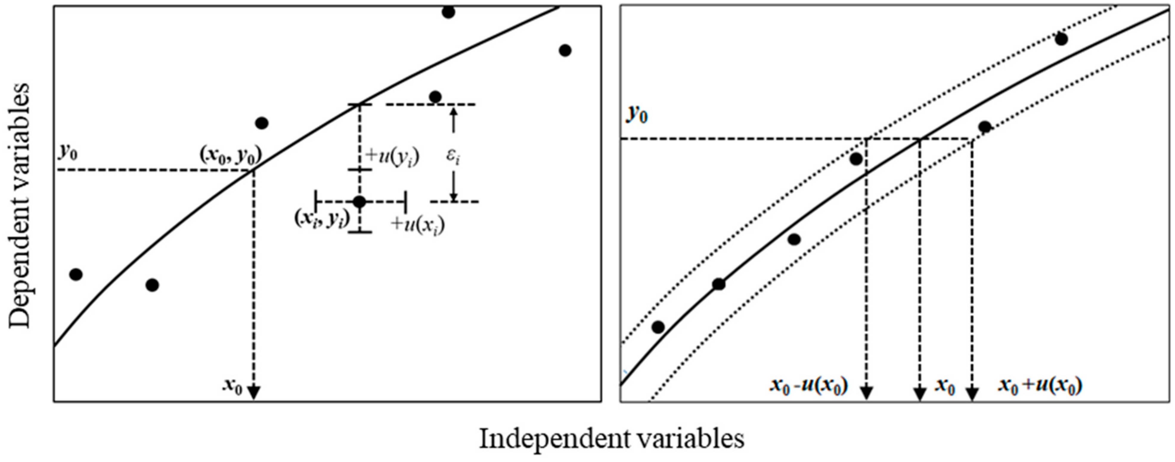 - Tellinghuisen, J. Least squares in calibration: Dealing with uncertainty in x. Analyst 2010, 135, 1961–1969. [Google Scholar] [CrossRef]