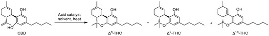 - Marzullo, P.; Foschi, F.; Coppini, D.A.; Fanchini, F.; Magnani, L.; Rusconi, S.; Luzzani, M.; Passarella, D. Cannabidiol as the substrate in acid-catalyzed intramolecular cyclization. J. Nat. Prod. 2020, 83, 2894–2901. [Google Scholar] [CrossRef]