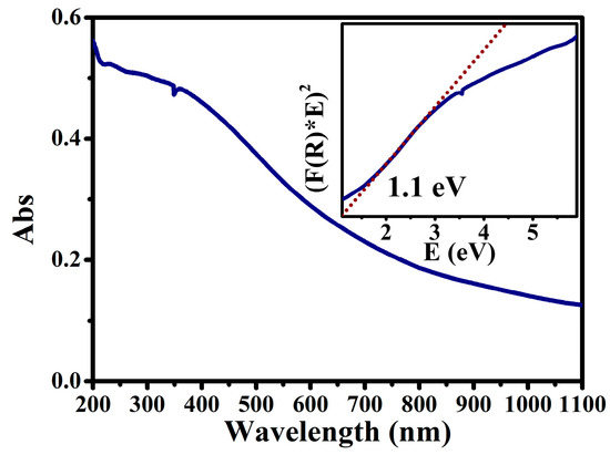 UV-vis-NIR absorption spectrum of the RP/BP heterojunction with the inset showing the band gap spectrum converted from it.