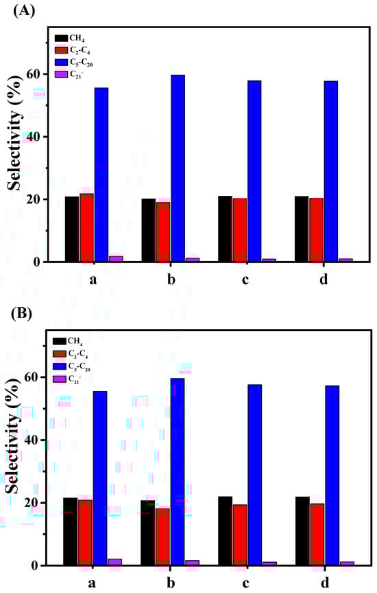 - Lin, T.; An, Y.; Yu, F.; Gong, K.; Yu, H.; Wang, C.; Sun, Y.; Zhong, L. Advances in Selectivity Control for Fischer-Tropsch Synthesis to Fuels and Chemicals with High Carbon Efficiency. ACS Catal. 2022, 12, 12092–12112. [Google Scholar] [CrossRef]