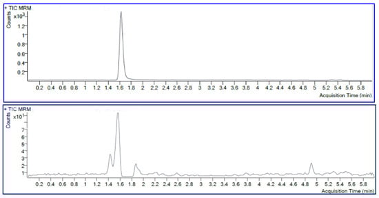 The LC method was carried out on an Agilent 1260 Infinity II system (Santa Clara, CA, USA), Agilent SB-C18 column with dimension of 2.1 × 50 mm, 1.7 μm (Agilent Technologies, CA, USA), and Agilent Ultivo Triple Quadrupole Mass Spectrometer (Santa Clara, CA, USA).