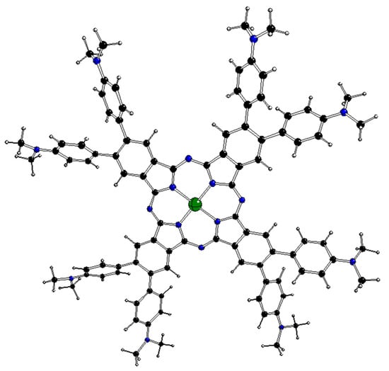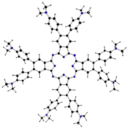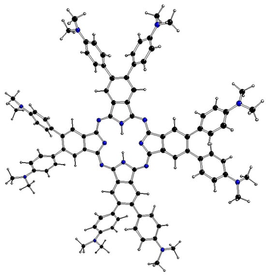 DFT-optimized structure of 1[dmaphPc]2− in CHCl3 (C—black, N—blue, H—white).