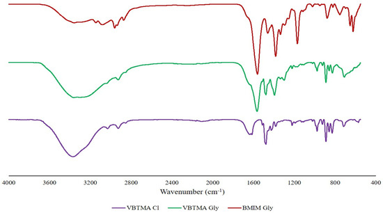 3.2. Synthesis of [VBTMA][Gly] and [BMIM][Gly] Ionic Liquids