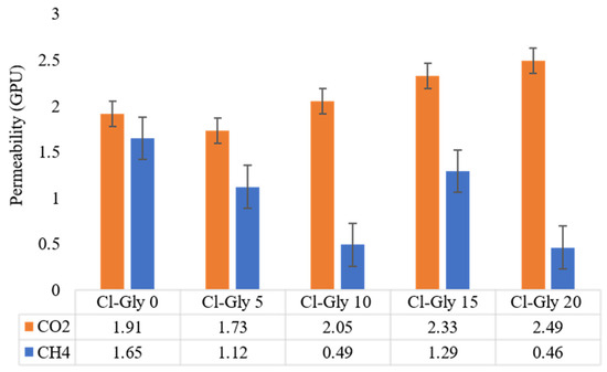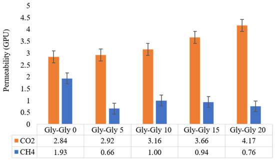 3.5. CO2/CH4 Permeability and Selectivity Studies