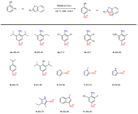 Inspired by the Tyrer process for C(sp2)-sulfonated aryl systems via an N(sp2)-arylsulfamate [34,35,36,37,38,39], we considered whether the mild sulfating reagent tributylsulfoammonium betaine (TBSAB) [40,41] would give rise to different reactivity profiles via the in situ N-tributyl ammonium counterion effect [14,15,42] and a milder preparation of C-sulfonated molecules.