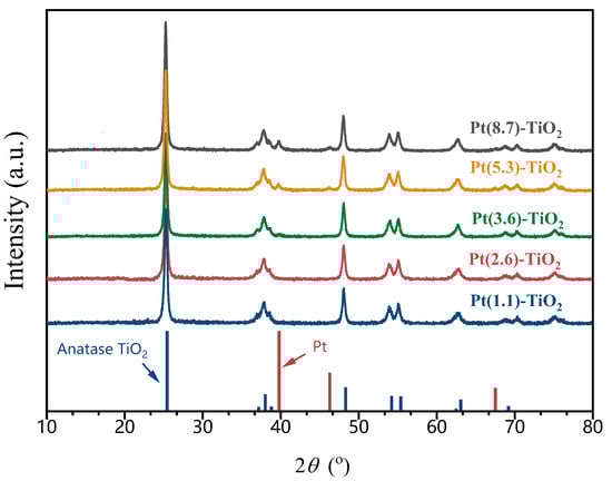 2.1. Characterization of the Pt-TiO2 Catalysts