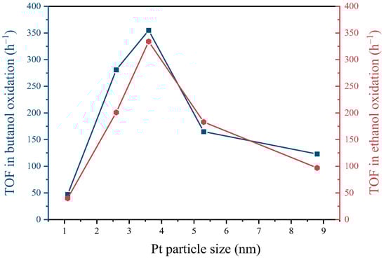 2.3. Pt Size Effect on Catalytic Performance of Butanol