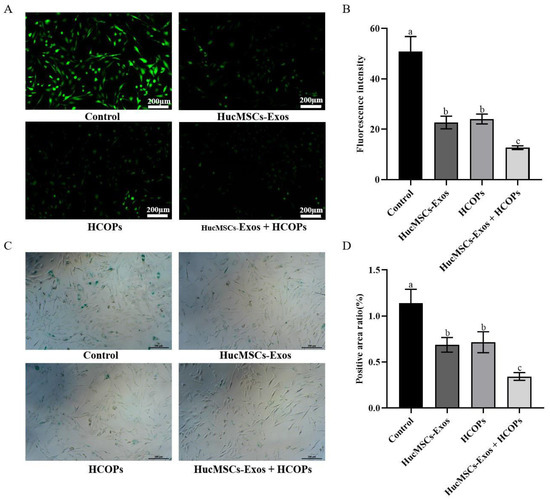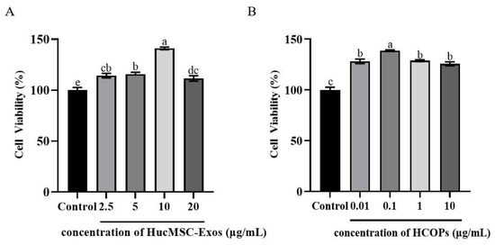 2.3. Effect of Different Concentrations of HucMSC-Exos or HCOPs on the Proliferation of Senescent HSFs