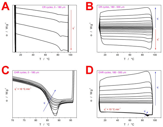- Svoboda, R. Utilization of “q+/q−=const.” DSC cycles for physical aging studies. Eur. Polym. J. 2014, 59, 180–188. [Google Scholar] [CrossRef]