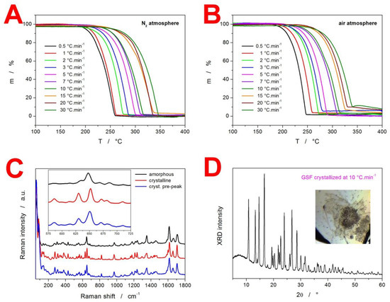 - Svoboda, R.; Macháčková, J.; Nevyhoštěná, M.; Komersová, A. Thermal stability of amorphous nimesulide: From glass formation to crystal growth and thermal degradation. Phys. Chem Chem. Phys. 2024, 26, 856–872. [Google Scholar] [CrossRef] [PubMed]