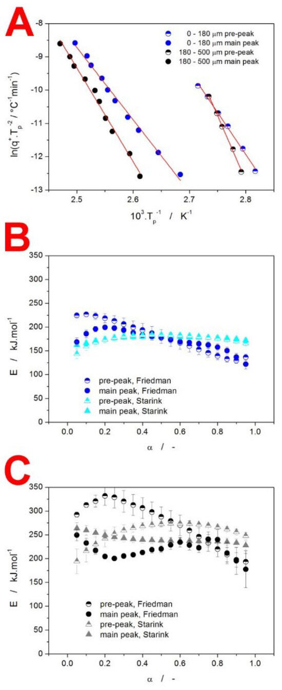 - Vyazovkin, S.; Burnham, A.K.; Criado, J.M.; Pérez-Maqueda, L.A.; Popescu, C.; Sbirrazzuoli, N. ICATC Kinetics Committee recommendations for performing kinetic computations on thermal analysis data. Thermochim. Acta 2011, 520, 1–19. [Google Scholar] [CrossRef]
