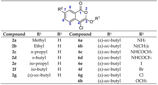 Structures of the synthesized 3-alkoxy-4-chloroisocoumarin compounds.