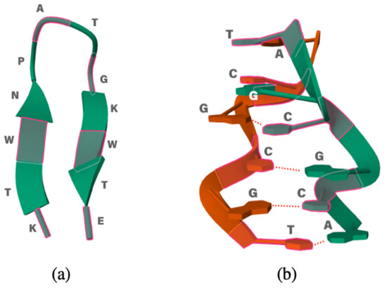 (a) Small polypeptide 2EVQ and (b) 1LJX DNA model.