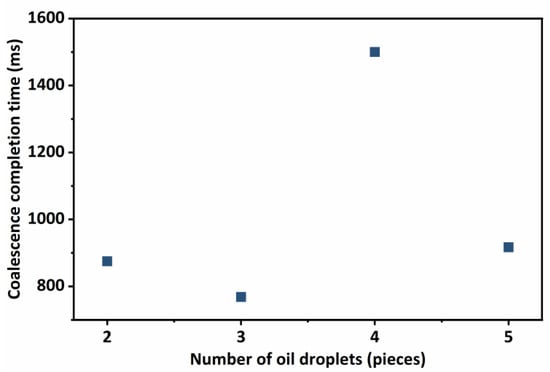 The coalescence time of oil droplets under different numbers of oil droplets.