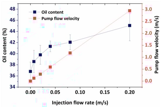 Changes in the oil content of the mixture under different pumping flow rates.