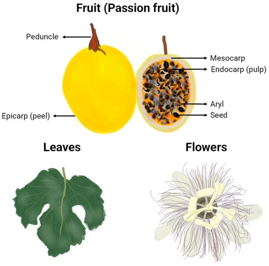 The genus Passiflora is widely distributed in tropical and subtropical regions, with more than 500 species already identified in Central and South America, of which roughly 150 are native to Brazil and approximately 60 produce edible, morphologically diverse, and sensorially singular fruits called passion fruits [1,2,3,4]. Passion fruits from autochthonous and exotic varieties are regionally consumed in fresh form or in very traditional preparations, such as juices, and varied culinary recipes, besides processed products [5].