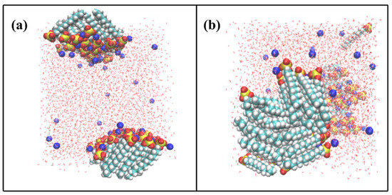 - Martínez, L.; Andrade, R.; Birgin, E.G.; Martínez, J.M. PACKMOL: A package for building initial configurations for molecular dynamics simulations. J. Comput. Chem. 2009, 30, 2157–2164. [Google Scholar] [CrossRef] [PubMed]