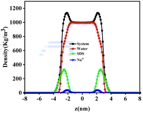 Density distribution profiles of pure SDS surfactant at the gas−liquid interface.
